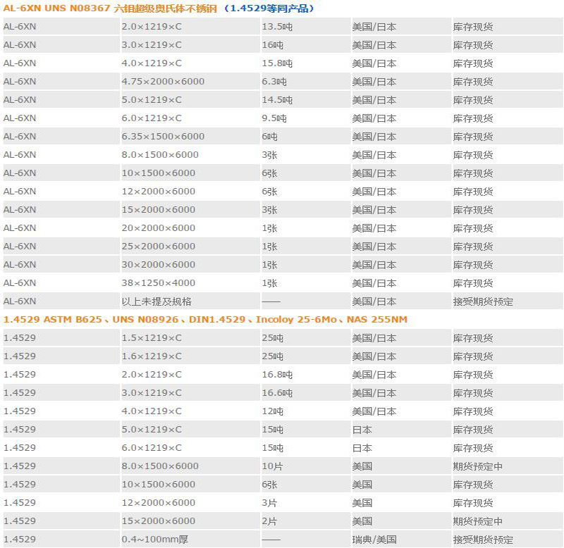 | 1.4529 | 厚0.5mm-150mm | 德国/日本 | 可预定期货 | ||